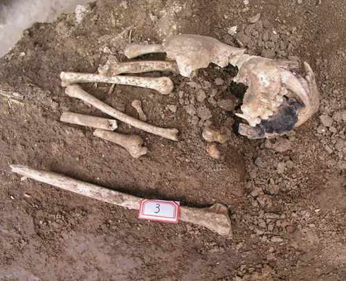 ▲陕西一座大约2300年前的战国秦陵园,墓中发现的头骨和下颌骨非常 独特,科学家认为这些骨骼属于现已灭绝的长臂猿属。