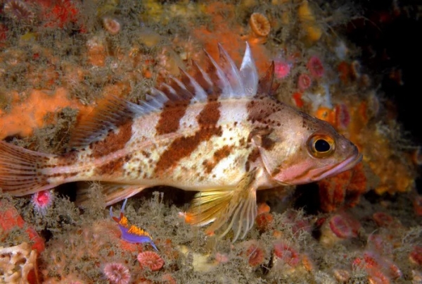 多尔氏平鲉(Sebastes dallii)是平鲉中寿命较短的物种,大约能活12年。图片来源:Photo by K. Lee.