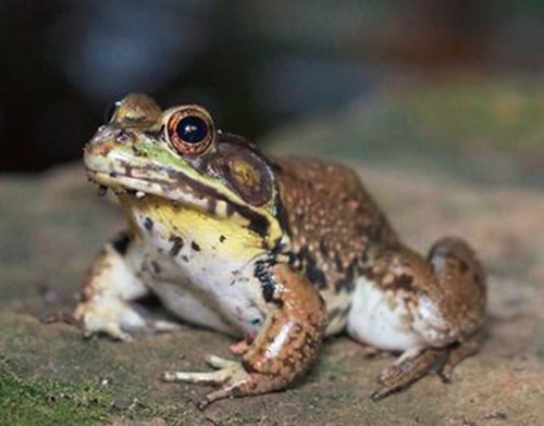 ▲牛蛙有淡黄色的单咽下内声囊,鼓膜大而明显(图片来自网络)