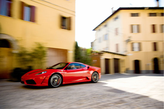 与只能在专用赛道上驰骋的法拉利Enzo FXX不同,Scuderia在公路上也大有用武之地。玻洛尼亚内陆是一个巨大的适合3、4挡驾驶的运动场,这里交通不算拥挤,在这里不仅可以享受到驾驶的乐趣,而且交通警通常会向你竖起大拇指,而不是开罚单。只需将manettino按钮设置为CT OFF,然后集中注意力,就请开始享受美妙的驾乘体验吧。此时驾驶技术已经退居次席了,在弯道上滑行时随着每一次重心的转移,它带给你无以伦比的满足和享受都会得到无限的放大。