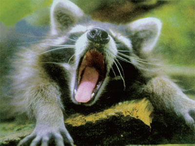 浣熊全身的毛由灰、黄、褐等色混杂在一起,脸上有黑色的斑毛,眼睛的周围有一圈黑毛,就像戴着一副太阳镜似的。每年春天发情交配,怀孕4个月后产崽。从出生到一周岁,它要换3次“服装”:开始着白,一周后深灰,以后就逐渐变得和父母一样。
