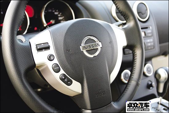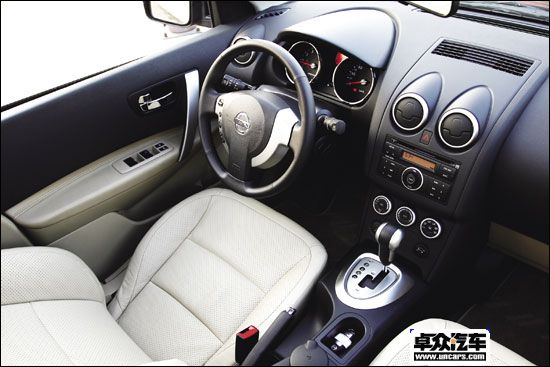逍客的内饰似乎在追求着一种含蓄,当人们把注意力全部集中在它的外表上时,你也许真的会对它的其他地方满不在乎了。如果是一辆轿车,你或许并不会接受眼前这样一个格局,但用在逍客上面,你的宽容让一切看上去都显得协调起来。你会毫不犹豫地将这种内饰风格理解为简洁和实用,仪表盘、中控台、方向盘这三大组件的存在似乎已经足够了,智能遥控钥匙系统、带功能控键的真皮方向盘、丰富的存储空间一下子成为了过于奢侈的配置。其实细细想来,逍客内饰里常用的配置一个都没有少,对于该车特殊的身份来说,精简一些未必就是一件坏事。