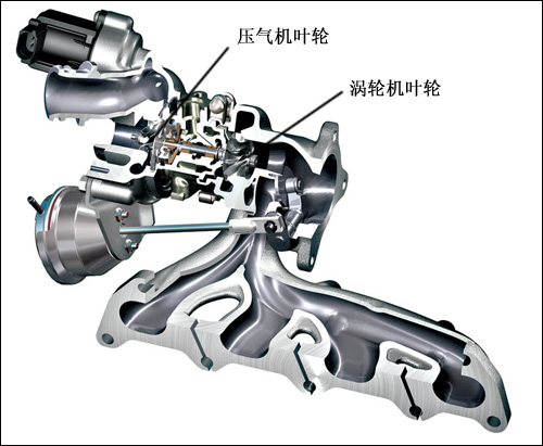 涡轮增压也称废气涡轮增压,是目前最常见、应用最普遍的发动机增压系统。涡轮增压器(Turbocharger)实际上是一种空气压缩机,由涡轮机和压气机组成,涡轮机和压气机又分别与发动机排气系统和进气系统相连。发动机在运行时,气缸排出的废气进入涡轮机,由废气能量推动涡轮机叶轮旋转,并带动与其同轴安装的压气机叶轮共同工作,使更多的新鲜空气在压气机内增压后进入气缸,增加的空气量使气缸内油气混合气的量也随之增多,从而增大发动机的输出功率。涡轮增压的优点是在发动机转速较高时增压效果显著,燃油经济性也比机械增压和非增压发动机要好,并且可大幅度地降低有害气体的排放和发动机的噪声水平。其缺点是由于叶轮本身的惯性作用导致涡轮增压器在发动机转速较低、废气能量不足时无法有效工作,致使涡轮增压器的响应时间滞后,也就是我们通常所说的“涡轮迟滞”现象,这也直接导致车辆在低速行驶时发动机功率增加不明显。而且在发动机工况连续发生变化时,涡轮增压器瞬时响应速度较慢,致使汽车的加速性,尤其是低速加速性能较差。