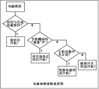 小贴士:供电系统故障是由交流供电线路断路、交流供电电压异常、电脑电源故障或主机内有短路现象等原因造成的。供电系统故障不一定是主机电源损坏所致,当交流供电电压异常(超压或欠压)、主机电源空载或是机内有短路现象时,主机电源内部为保护硬件不受损伤,会自动切断电源的输出。