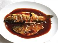 原料:草青鱼一条(约900 克), 醋鱼料、姜末各适量。