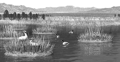 与雨林和珊瑚礁一样,湿地也是地球上最为活跃、物种最富有多样性的生态系统,但现在面积正逐渐减少。发明家布鲁斯·卡尼纳希望能够用人造湿地来改变现状。他利用聚合物打造网层,使用黏性泡沫将网层黏合在一起,同时铺上草皮和湿地植被。卡尼纳所用的植物都是经过精心挑选的,它们能够吸引昆虫、青蛙、水禽、海狸等任何生活在湿地的野生动物。在生长过程中,植物的根会通过塑料母体在水下“结网”。微生物将依附在聚合纤维上,同时为根部系统拓展“殖民地”,进而形成一个由生物膜构建的黏性层,并最终达到净化和氧化水质的目的。
