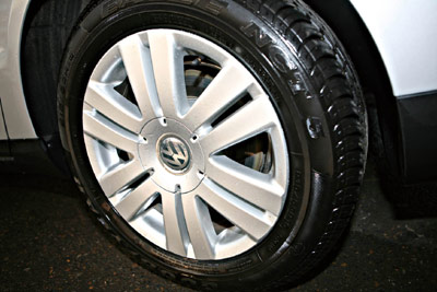 STEP7:检查制动盘(毂)。制动盘(毂)是有使用寿命的,当它们磨损到一定程度时必须更换,一般城市行车中的正常使用,它们的寿命大约是5万km,制动蹄片的寿命在3万km左右,但是具体情况还要看车主的使用情况,最好是每1万km检查一次。另外,轮胎对于制动距离的影响是相当大的,现在的每条轮胎上,都有一个磨损标记,当露出这个标记时,必须更换。