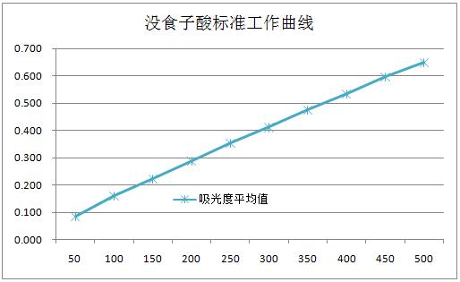 1.2.6 没食子酸工作液:用移液管分别移取0.5,1.0,1.5,2.0,2.5,3.0,3.5,4.0mL没食子酸标准储备溶液(1.2.5)于试管中,分别用水定容至10mL刻度并摇匀,浓度分别为50,100,150,200,250,300,350,400ug/mL。