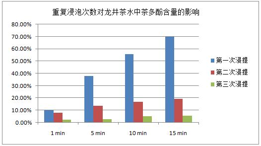 3.龙井茶使用中水温(70℃左右)通过两次短时(15min)浸泡的办法,也可以使茶多酚的溶解率达到90%以上。