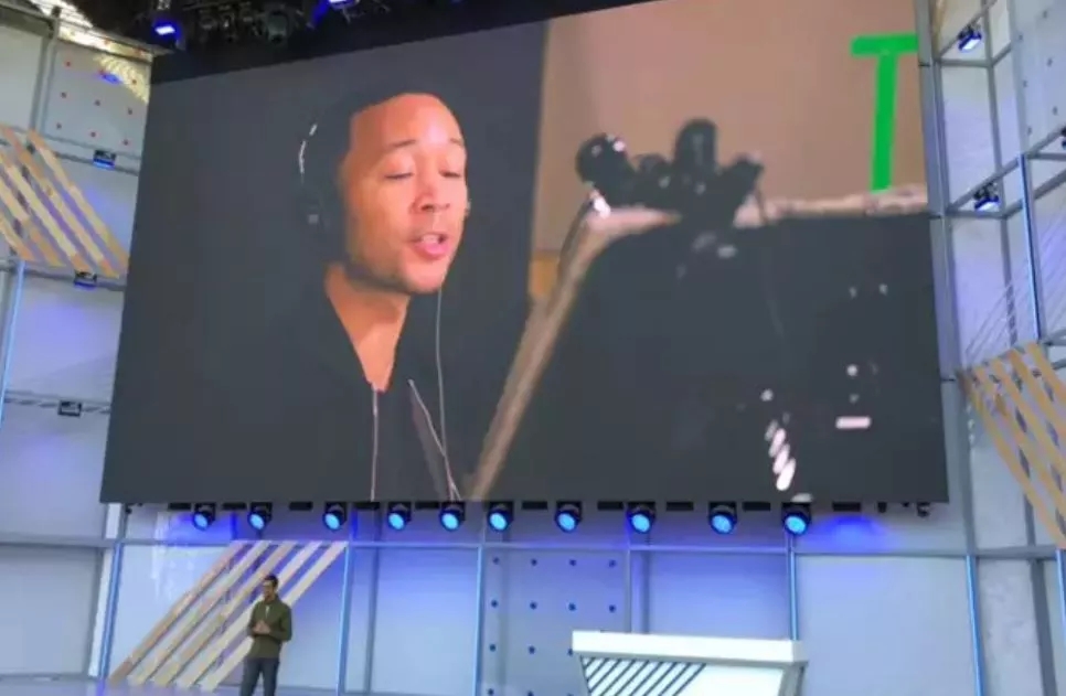 ▲ 发布会现场皮蔡发布了谷歌助手6款新增声音,其中还包括John Legend 的声音,想感受下“大明星”给你当助理是一种怎样的体验吗?