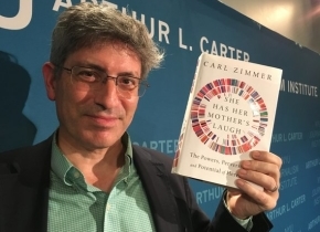 Science journalist Carl Zimmer, author of the book She Has Her Mother’s Laugh: The Powers, Perversions and Potential of Heredity. Zimmer spoke last month at New York University’s Journalism Institute. Right now, commercial genome services only look at a small percentage of all your DNA. But as the cost plummets, you’ll get your entire genome.