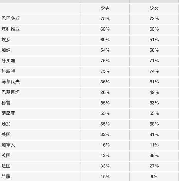(每天饮用一份或更多碳酸软饮料的13-15岁青少年所占比例 图源:世界卫生组织)