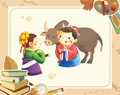 成语三 答案为老牛舐犊,出自《后汉书·杨彪传》,意思是老牛舔小牛,比喻父母疼爱子女。