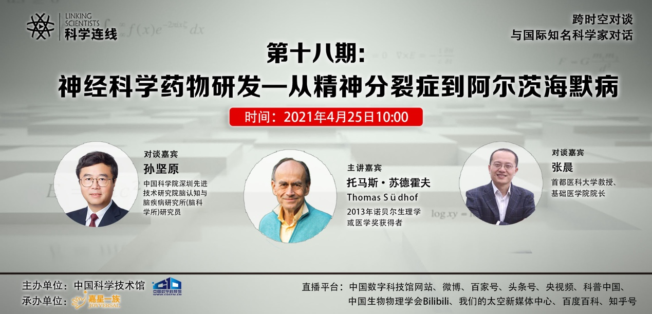 本次节目,我们邀请到2013年诺贝尔生理学或医学奖获得者托马斯·苏德霍夫作为主讲嘉宾,他将就“神经科学药物研发—从精神分裂症到阿尔茨海默病”这一主题为大家揭开脑科学的神秘面纱。