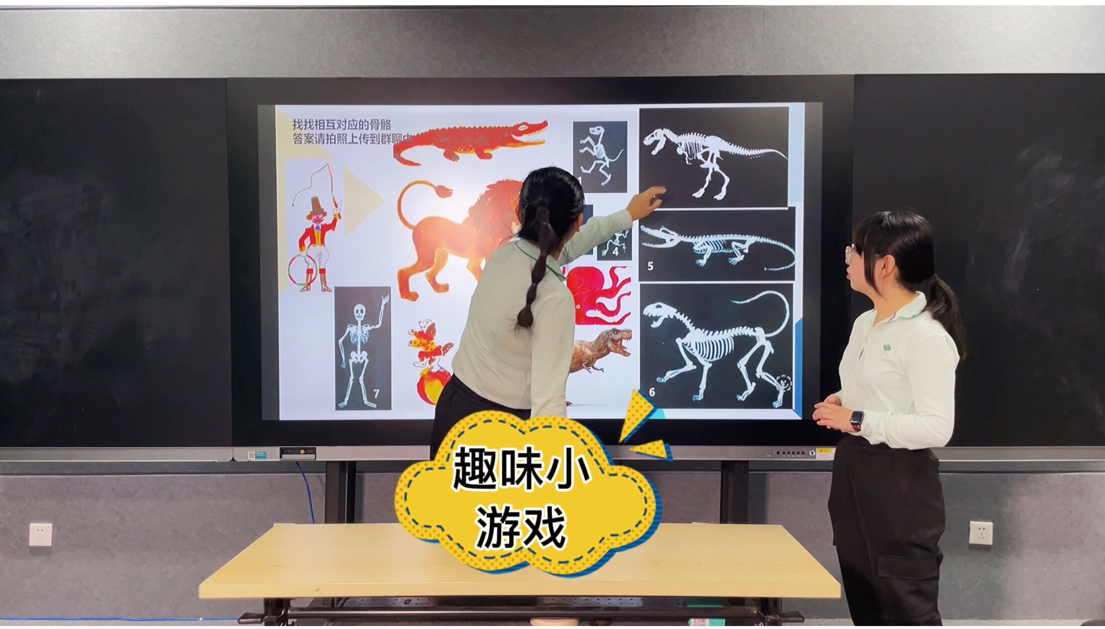 所有动物都有骨头吗?骨头都是硬硬的吗?不同动物尤其是人类的骨骼系统是怎样的?在这里,小朋友们可以和家长做个小游戏,为骨骼寻找对应的“主人”,并对骨骼与动物的关系进行讨论和思考。