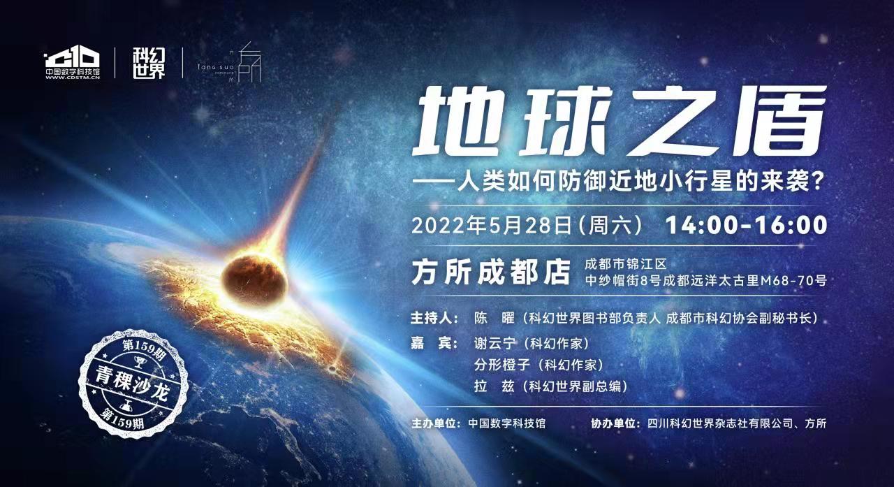 5月28日(周六)下午14:00,第159期青稞沙龙,我们将邀请4名科幻作家、编辑,从科幻作品中的各类天文风险带给我们的启示出发,探讨我国组建近地小行星防御系统这一事件,并延展讨论人类如何科学应对、规避天文风险等议题,拓宽公众对外太空天体的进一步认知了解,重置我们对天文风险的科学看法。