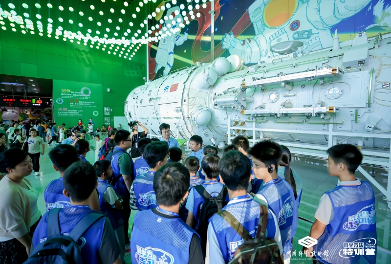 7月5日,“科学方法特训营”暑期营地系列活动首场——“星际启航”营地探访活动在中国科技馆和国家速滑馆隆重开营,拉开了“科学方法特训营”暑期营地活动的帷幕。中国科学院、北京交通大学等高校院所专家及北京市20所合作校的教师代表和近百名青少年学员,共同开启这场融合科技探索、思维碰撞与工程实践的沉浸式研学之旅。