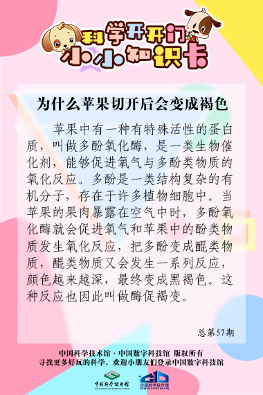 小朋友们,你们喜欢吃苹果吗?你们观察过切开后的苹果吗?有没有发现苹果被切开后静置一段时间就变成了褐色,这是为什么呢?