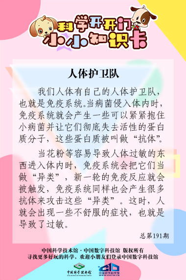 小朋友们,你们知道人体的护卫队是什么吗?人体护卫队可以帮助我们消灭入侵人体的“敌人”,但是有时候也会“防卫过当”,引发过敏,这是怎么回事呢?