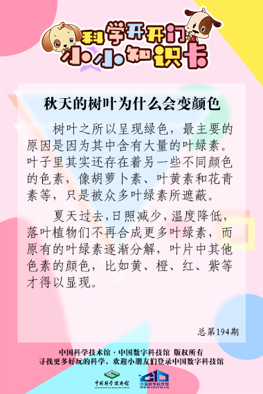小朋友们,你们知道秋天的树叶为什么会变颜色吗?树叶里面到底有什么呢?快来了解一下吧。