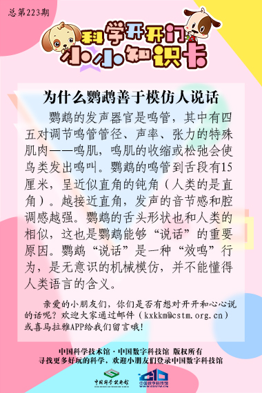小朋友们,你们见过会“说话”的鹦鹉吗?鹦鹉“说话”的科学秘密是什么呢?