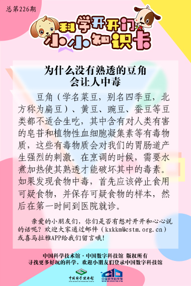 小朋友们,你们知道吗?没有熟透的豆角会让人中毒。这是为什么呢?