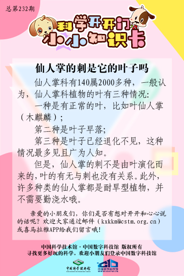 小朋友们,你的家里有仙人掌吗?你有没有认真观察过仙人掌身上的刺,它长什么样子?它真的是仙人掌的叶子演变来的吗?