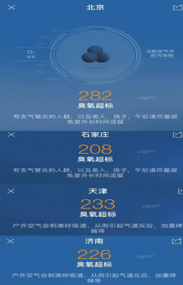 尽管无色无形,臭氧污染的危害却不容小觑。中国疾控中心环境所空气质量安全监测室主任吴亚西在接受媒体采访时表示,臭氧具有强氧化性,臭氧污染会对人的呼吸道产生强烈的刺激,引发胸闷咳嗽、咽喉肿痛,严重的会引发哮喘,甚至导致肺气肿和肺组织损伤等问题。同时,臭氧也会刺激眼睛,使视觉敏感度和视力降低。它还会破坏皮肤中的维生素E,让皮肤长出皱纹、黑斑。