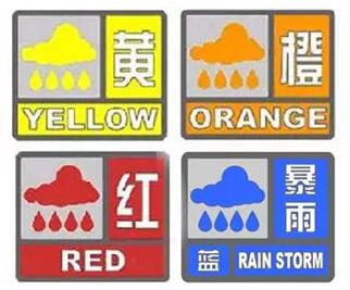 暴雨预警信号分为蓝色、黄色、橙色、红色4个级别。(图片来源:网络)