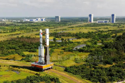 火箭从文昌航天发射中心发射。全箭总长56.97米,芯一、二子级直径5.0米,单个助推器直径3.35米,火箭起飞质量约869吨,主要用于发射地球同步转移轨道卫星,地球同步转移轨道运载能力达到14吨。
