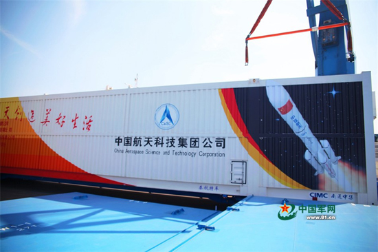 “长征五号”首飞火箭集装箱已经全部登上远望号火箭运输船,并从天津港解缆起锚,运往海南文昌发射场。
