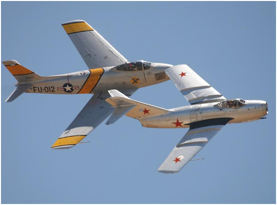 第一代战斗机代表:F-86(左)和米格-15(右)