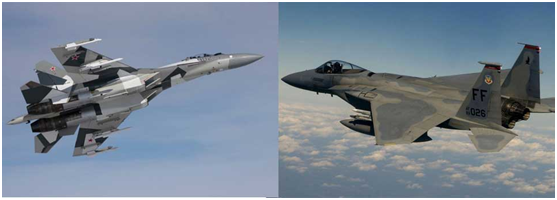 第三代战斗机代表:苏-27(左)和F-16(右)