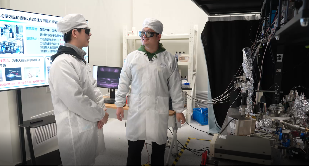 在光动量实验室,量子传感研究中心高级研究专员高晓文介绍了极弱力探测装置的工作原理及其应用前景。据介绍,课题组搭建了高真空光阱稳定悬浮、亚皮米级三轴解耦位置探测、毫开尔文级敏感单元质心运动冷却等一系列关键技术研究平台。2021年度,课题组科学装置的力探测灵敏度指标提升一个量级,达到1.7×10-20N/Hz1/2。他们的研究成果将能够支撑暗物质、引力波等前沿科学研究以及国家需求应用。