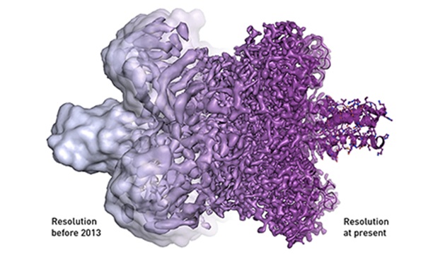 技术升级和创新使得电子显微镜每一个“螺母和螺栓”结构部件都得到了优化。2013年,科学家们成功实现了符合生物分子原子分辨率的指标,这项技术突破给结构生物学领域带来一次革新。许多长期无法解决的重要大型复合体及膜蛋白的原子分辨率结构被攻克。
