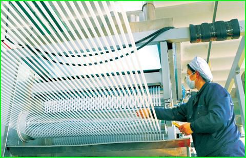 中复神鹰碳纤维负责人张国良介绍,整个碳纤维的生产,中间控制的有三千多个工艺点,每一个工艺点都要进行严格的稳定控制,哪个工艺点的参数发生了变动,碳纤维质量就会下降。为此,中复神鹰研制出高效换热的60立方米大型反应釜,实现了高均匀性、高可牵伸性聚合物溶液的制备、开发了多工位、长稳态、高纺速干喷湿纺工艺及关键装备,纺丝速度达到300m/min以上。突破了干喷湿纺原丝细旦化、高取向化技术。开发出干喷湿纺原丝快速预氧化技术,有效缩短了预氧化时间。通过这一系列的关键工艺点的控制,中复神鹰实现了产品稳定生产。目前其主要产品已经被成功应用于电缆复合芯、建筑等领域,取得了良好的社会经济效益。