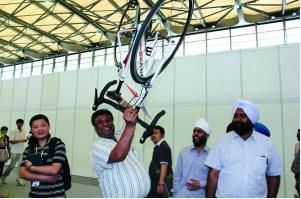 中复神鹰公司向外国客商展示使用国产碳纤维制造的自行车。