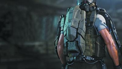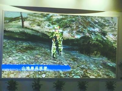 电影屏幕上,穿着外骨骼的士兵威风凛凛。