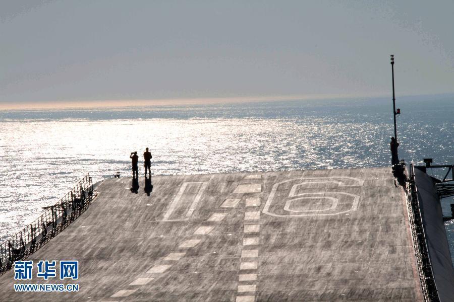 辽宁舰赴相关海域进行例行训练和科研试验。海军机关随舰对辽宁舰和航母指挥机构展开训练监察,以检验评估近3年训练和科研试验效果。(新华社记者 王东明 摄)