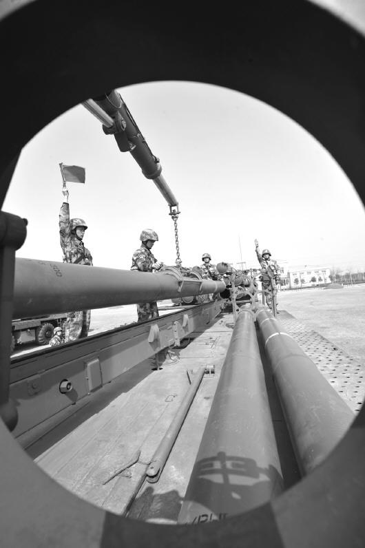 官兵们正在装填火箭弹。(杨广辉摄)