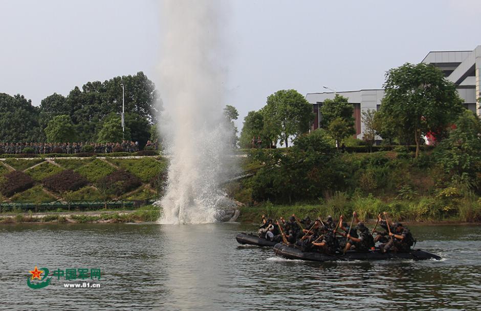 中国军校学员进行武装泅渡、蛙人渗透等特战训练。