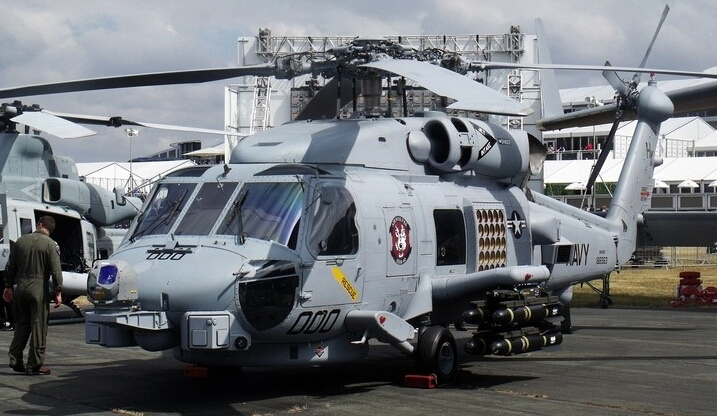 图为在机体一侧挂载4枚“海尔法”导弹的美国海军“海鹰”直升机,日后中国的新一代舰载直升机也必将具备类似性能,在近海近岸环境下,攻击敌方轻型舰艇与潜艇,这种作战形式或在日后的南海相当普遍。(资料图)