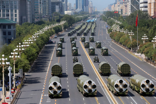 公路机动导弹尽管没有提前加注燃料的问题,但发射前还需进行寻找发射阵地、测量各项参数等准备工作。而对于发射井中的液体导弹而言,由于所有发射参数都已经预先设定,一旦没有了加注燃料的限制,反应速度反而比固体燃料导弹更快。此外“东风-5B”可携带多个分导式核弹头,可打击不同目标,威慑力比单弹头的“东风-31A”更强。因此参加阅兵的“东风-5B”反应快、威慑力强,“东风-31A”导弹的生存力高,两者可谓是相互补充。