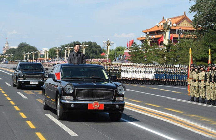而习近平主席乘坐的检阅车,看上去也比陪同的阅兵总指挥乘坐的轿车大了一圈,有消息称,这是一辆红旗CA7600J,该车车长6.4米、空载车高1.72米、车宽2.08米,车重4.5吨,发动机为一汽自主研发的V126.0发动机。
