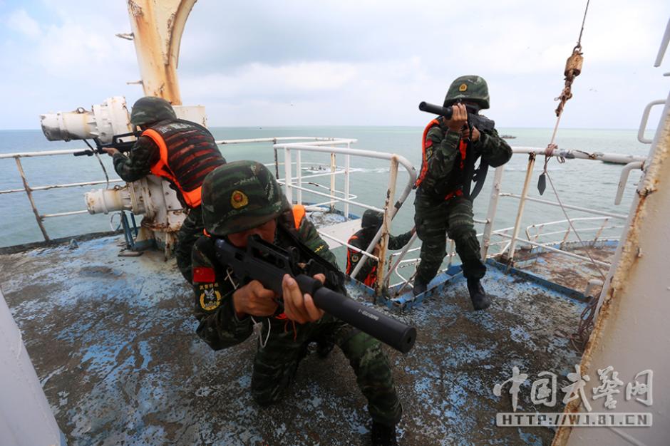 自9月8日起,武警部队派出雪豹突击队和猎鹰突击队赴南方某水域,进行首次水上交通工具反劫持针对性训练,完成了共同、专业和战术3大类23个课目的训练任务。期间,采取逐课目过关、逐人员考核方式,对所训课目实施普考;并以客轮反劫持行动为课题,采取情况诱导、红蓝对抗方式组织综合研练,在实战背景下全面检验水上交通工具反劫持作战能力。