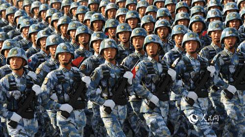 资料图:参加抗战胜利日阅兵的解放军官兵