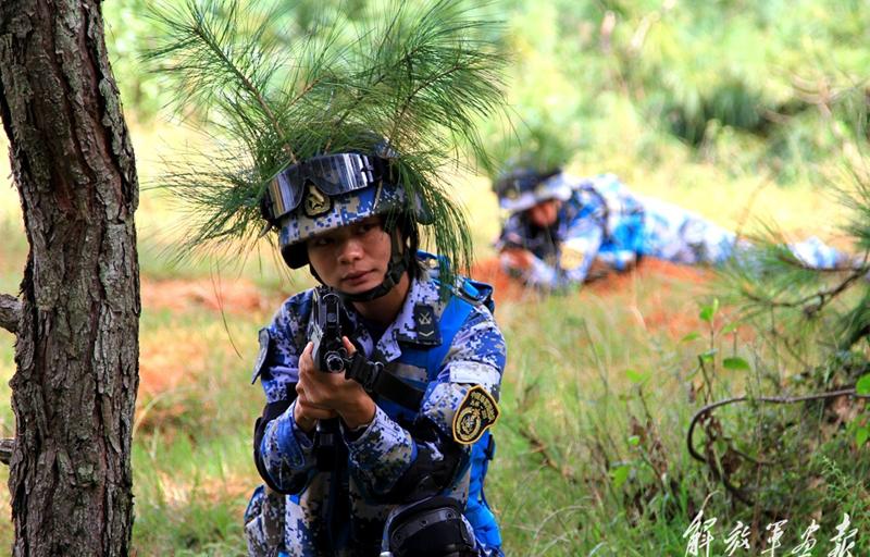 当都市街头“头上长草”受到热捧的时候,正在野外训练的海军陆战队女兵就地利用简便物资进行伪装训练,形成了属于自己的流行风。