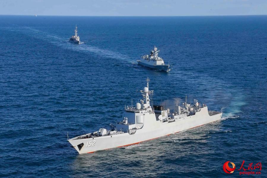 当地时间14日下午,正前往环球访问第七站——葡萄牙里斯本进行友好访问的中国海军152舰艇编队途径法国罗斯科夫以北海域时,与法海军举行了联合演练。