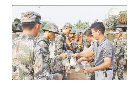 还有一次,广州军区某部万人千车跨区机动进驻漳州参演。漳州市县两级主要领导带领群众前往驻训点慰问,不仅现场解决了参演官兵的基本生活保障问题,还及时组织清理了演习涉及到的120余平方公里陆地和海域。