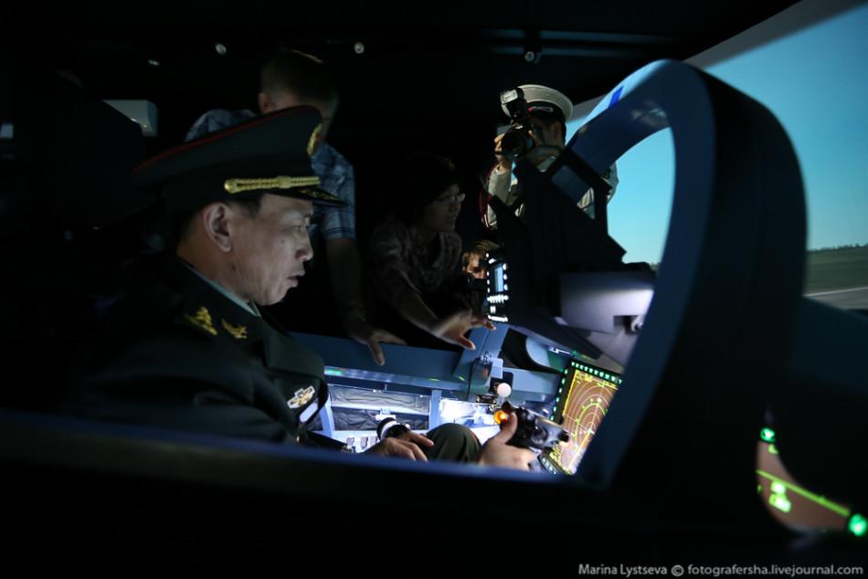中国军官体验苏-35战斗机模拟驾驶器。